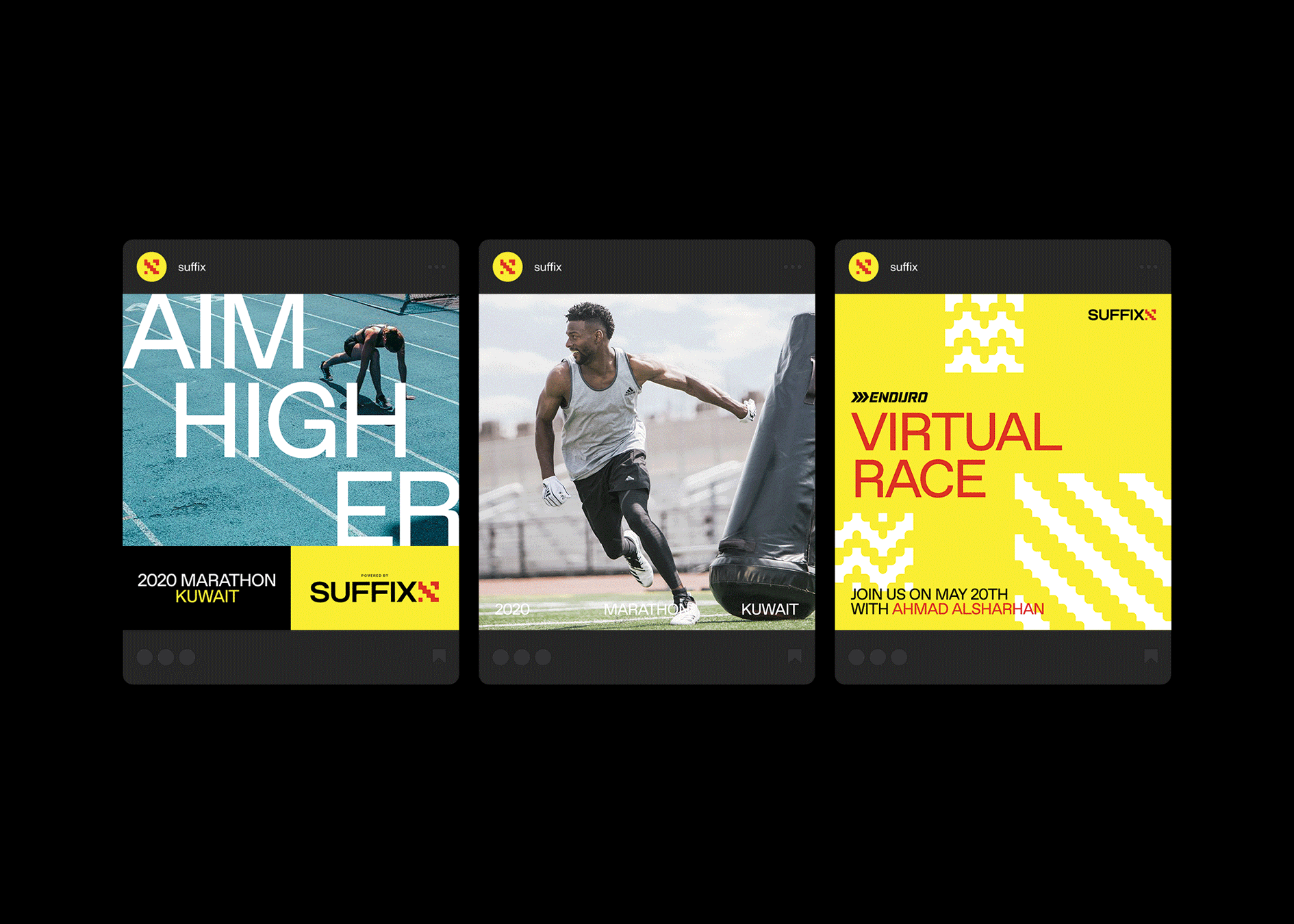 In a developing cultural shift, athletic culture in Kuwait is taking off. Suffix, an emerging events and sports management company, was ready to grow with this movement and needed a new brand language that had room for their ambitions. We worked to capture the essence of sport from the individual's perspective taking inspiration from training, personal motivation, sports trackers and all the ways we challenge ourselves through sport.